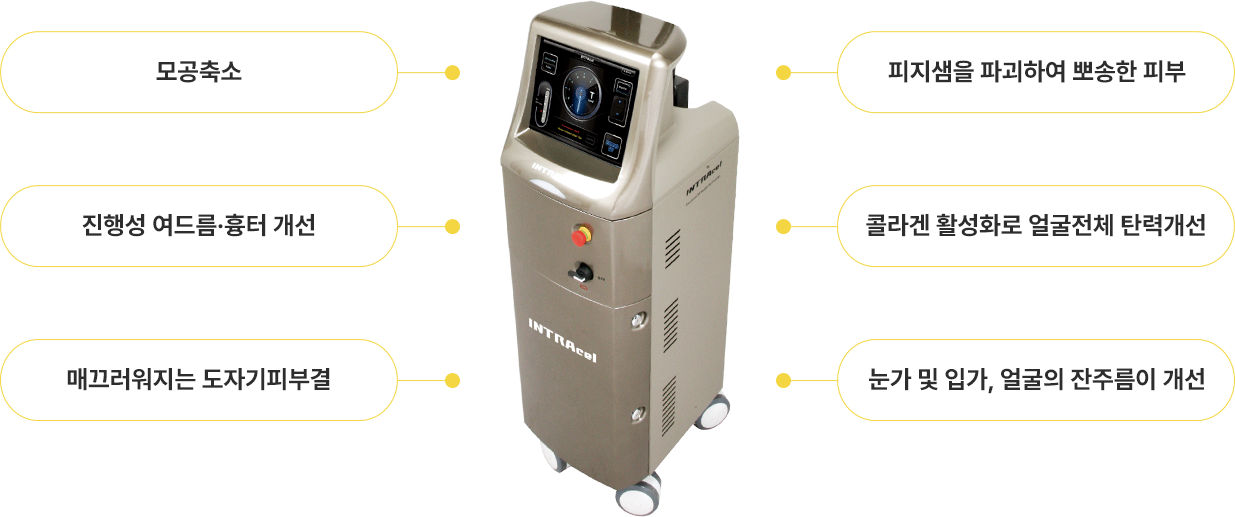 ![]() | 진행성 여드름, 여드름흉터, 주름, 색소질환을 동시에 치료가 가능합니다. |
